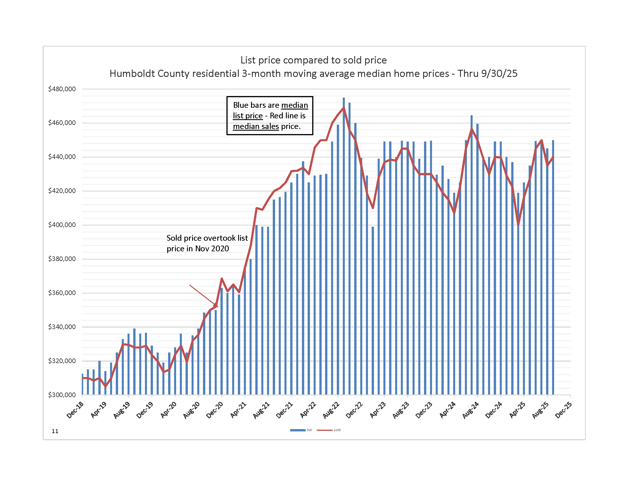 Homes sold for 12 Consecutive Months. I wrote last month that the modest dip in total annual sales is not an indication of a trend change. The sales number for the last 12 months ending in September rose to 1134 homes. The upward climb continues.