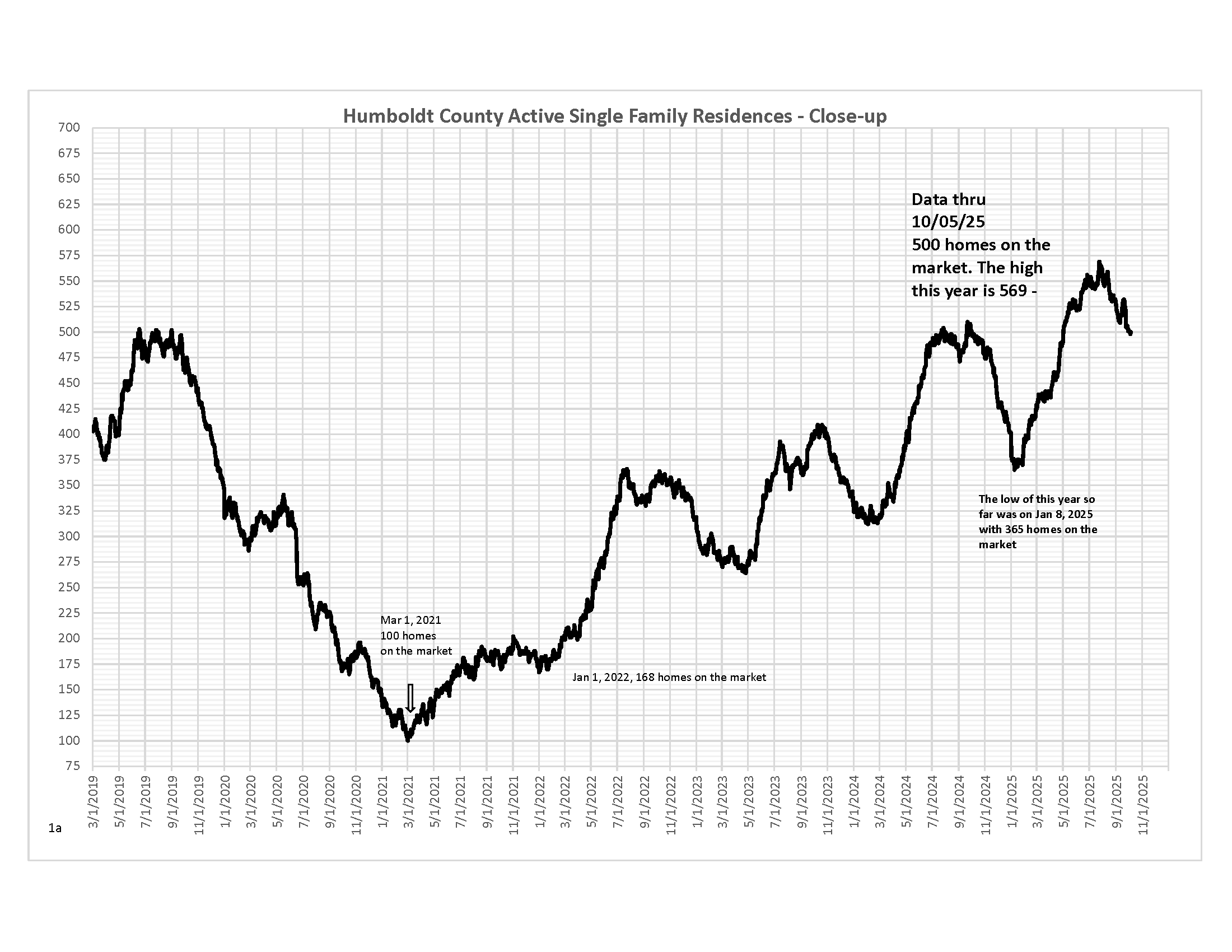 Active residences (current inventory) – Last month I wrote, “The supply of homes should continue to decrease into the end to the year.” It appears that inventory has, in fact, begun the annual downturn into the end of the year. As that trend continues, buyers will have fewer homes to choose from. Inventory is at 500 homes on October 5, and has decreased 12% since the high of 569 in July.